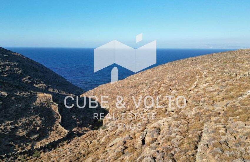 Το ακίνητο είναι αμφιθεατρικό, διαμορφωμένο σε μεγάλα επίπεδα, με νοτιοανατολικό προσανατολισμό και απολαμβάνει θέα στη θάλασσα και στους γύρω λόφους. Η τοποθεσία προσφέρει γρήγορη μετάβαση με αυτοκίνητο στο κέντρο του νησιού, την Απολλωνία, καθώς και στις πιο γνωστές παραλίες του νησιού (Βαθύ, Φάρος, Πλατύς Γιαλός, Καμάρες)