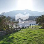 Μια εξωτερική σκάλα οδηγεί στο ισόγειο και στη κύρια κατοικία επιφάνειας 85τμ. Η είσοδος βρίσκεται σε στεγασμένη βεράντα με πέργκολα, ενώ μπαίνοντας αναπτύσσεται μια ευρύχωρη και φωτεινή σαλοτραπεζαρία με τζάκι και μεγάλες τζαμαρίες που οδηγούν στη βεράντα. Στο βάθος βρίσκεται η κουζίνα, ένας μικρός χώρος αποθήκευσης και ένα λουτρό. Η κατοικία διαθέτει δύο υπνοδωμάτια, εκ των οποίων το ένα είναι μάστερ με δικό του μπάνιο. Και τα δύο υπνοδωμάτια έχουν άμεση πρόσβαση σε μεγάλες βεράντες με όμορφη θέα στο φυσικό τοπίο του νησιού, τη θάλασσα και τους γύρω οικισμούς. Ο προσανατολισμός είναι νότιος, εξασφαλίζοντας άπλετο φυσικό φως καθ’ όλη τη διάρκεια της ημέρας.